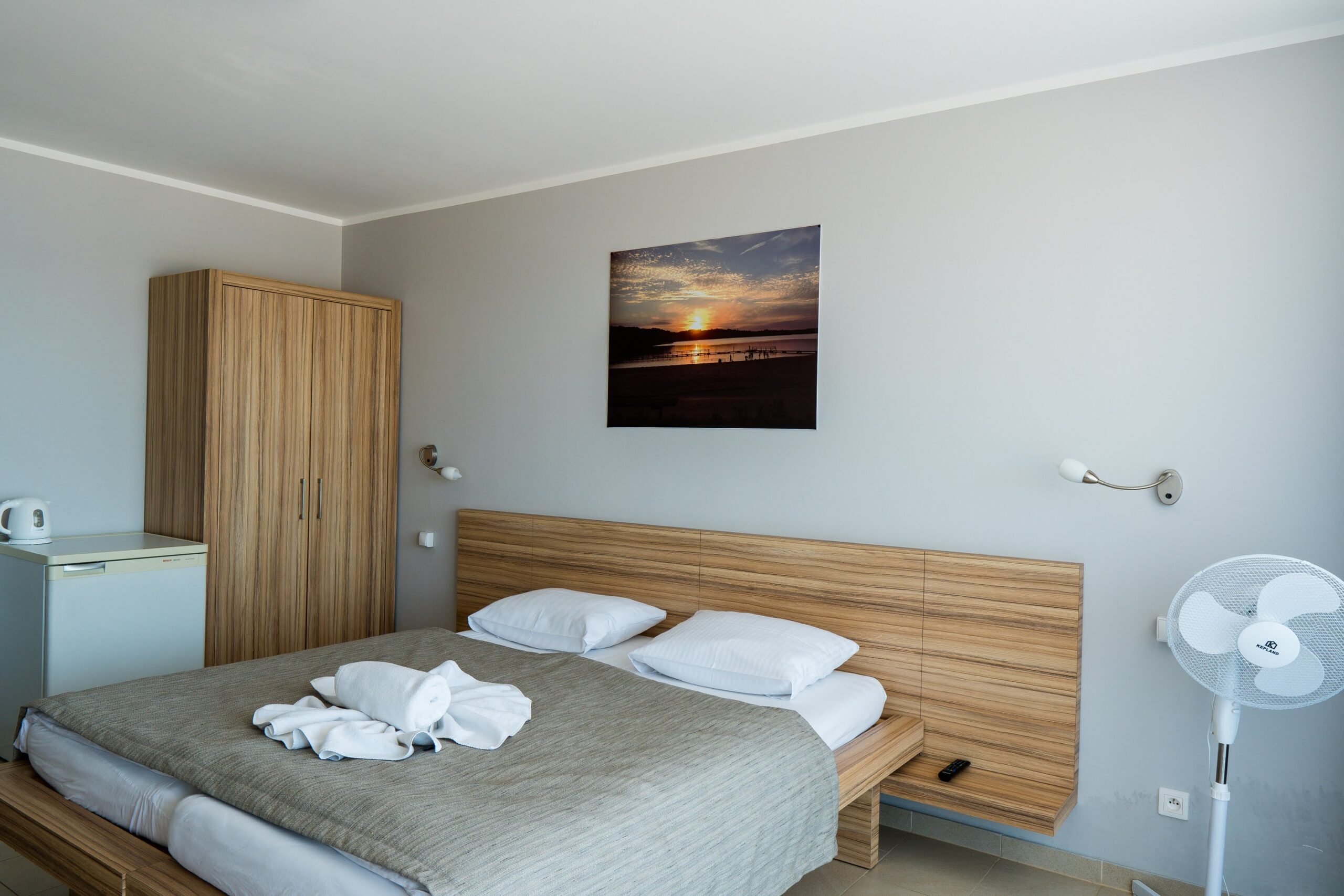 - Udogodnienia: czajnik elektryczny, darmowy dostęp do Wi-Fi, lodówka, lokalizacja przy samej plaży, łóżko, łóżko podwójne, możliwość dostawki, narożnik, prywatna łazienka, taras, telewizor, widok na jezioro